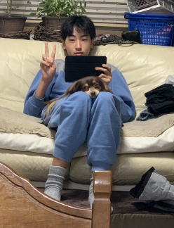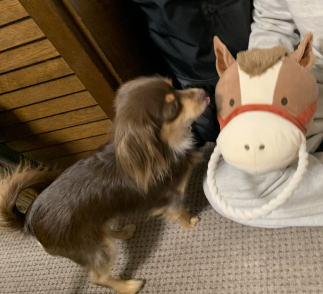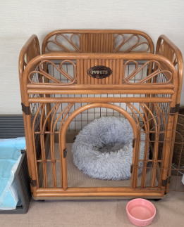 ベスのハウスに寝てベスの食器でご飯を食べます