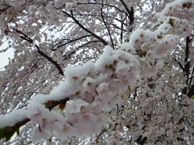 4月26日 さくら満開そして翌日は雪桜