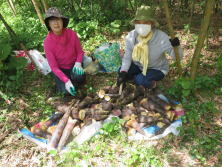 落石して大小の石がゴロゴロしてるところを歩いて山うどを採りました