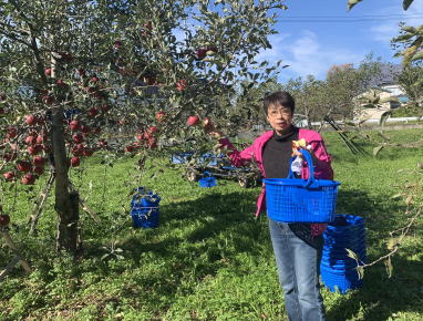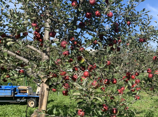 三連休最後の日に岩城山麓木村さんの所にリンゴ狩りに行った