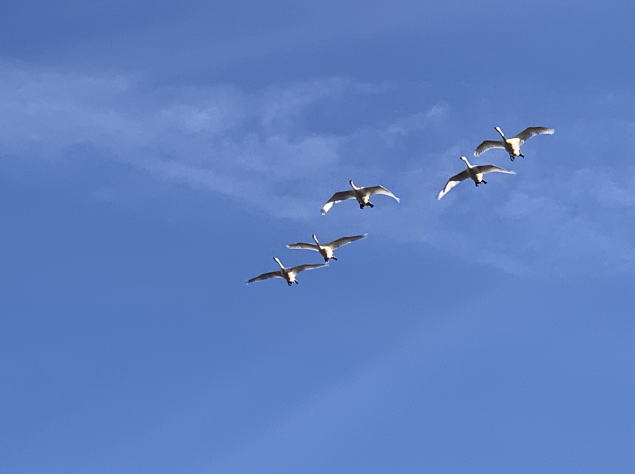 白鳥の声が聞こえて前の川にも三羽飛んできた