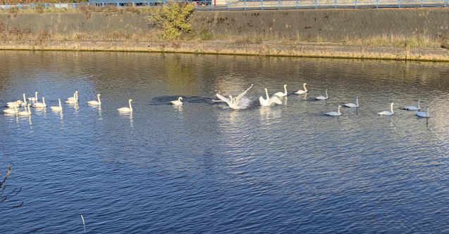 白鳥の群れが、右からも左からも