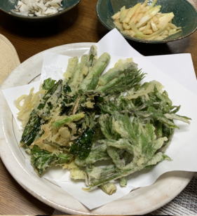 毎日が山菜三昧、天ぷら、わらびのお浸し、炒めたり