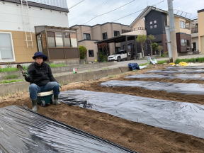 急遽ビニールをかけに行き、7本畝を作ってきました