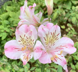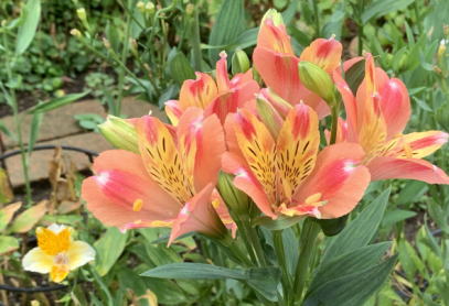 庭は休憩中、アリストロメリアと時期外れのさつきが一輪だけ!
