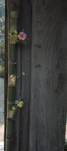 アジサイで有名な明月院では、門にオシャレにお花が!