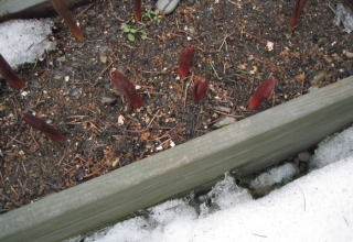 チューリップが、芽を出した