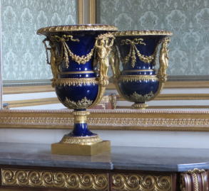 金色の装飾で飾り、壁には多数の銅像を置いてバロックらしい重厚さで部屋を飾った