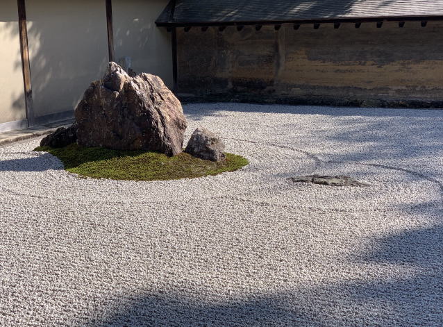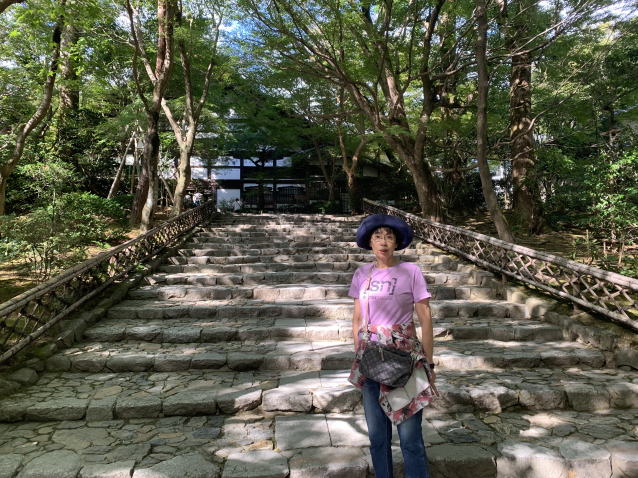 暑かったので半袖、きれいな枯山水のお庭を見て
