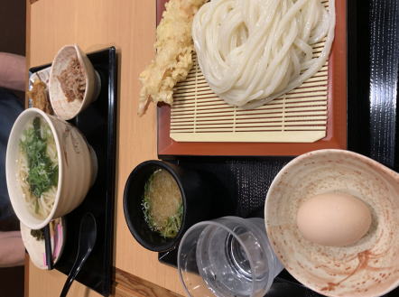 途中でうどんを食べた