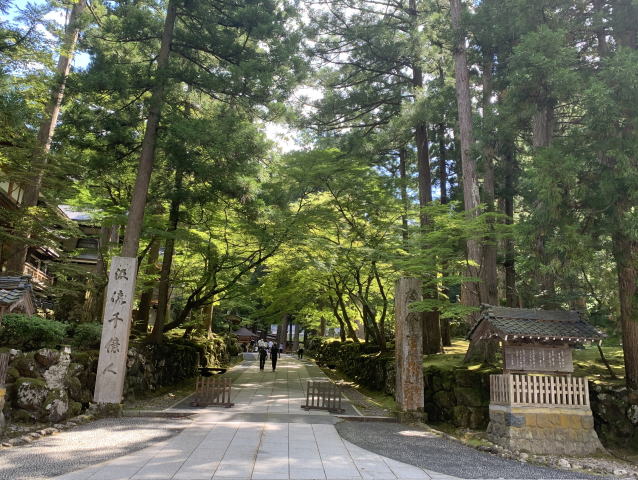 朝一便9時50分発 永平寺直通便30分 お天気も良くて 緑もお寺の雰囲気も 良かった 1時間半位見て回った 法要も行われてて たくさんのお坊さんが いました 勘違いかも?知れないけど 以前は廊下も 黒光りしてたような?