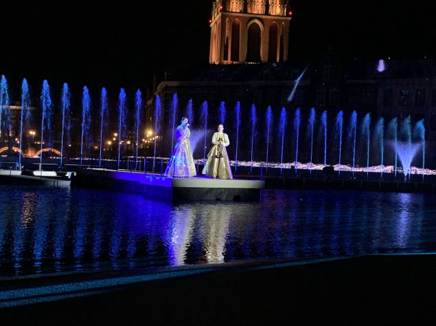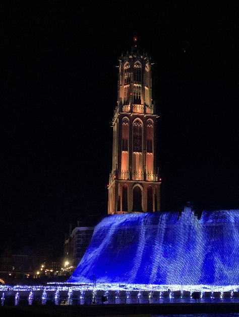夜はプロジェクションマッピングや