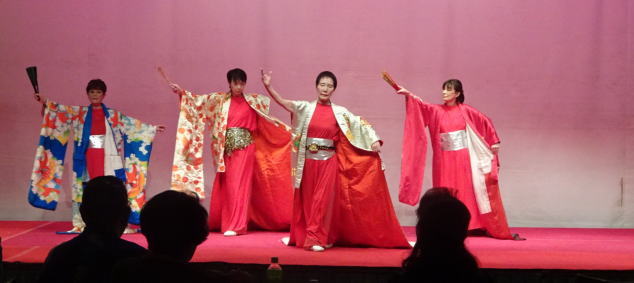 扇を使ってパフォーマンスする